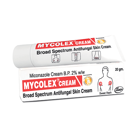 Mycolex Cream is a topical antifungal medication formulated with Miconazole Nitrate 2% w/w to treat and prevent various fungal skin infections, including athlete’s foot, jock itch, ringworm, and yeast infections. It provides fast relief from itching, burning, redness, and irritation while effectively eliminating the fungal infection.